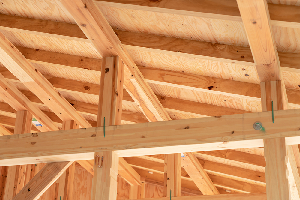 見えない部分の下地には合板を使い、コストを抑えながら性能を確保する。